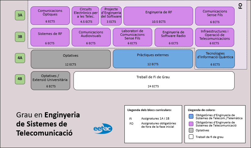 A continuació es detalla el pla d'estudis del Grau en Enginyeria de Sistemes de Telecomunicació de l'EETAC. Per obtenir informació de les vies d'accés, la matrícula, les nota de tall, les beques i ajuts, etc. clica aquest enllaç.