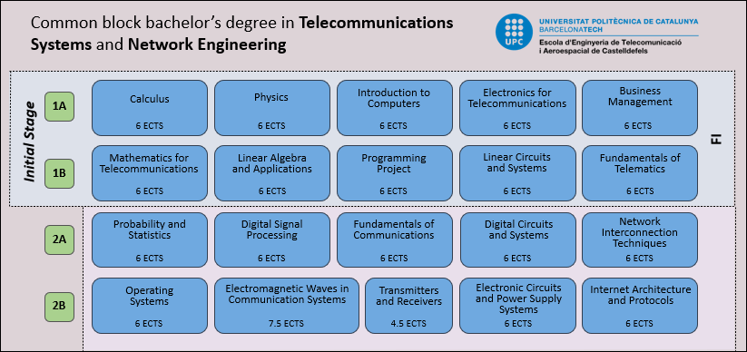 There is a common access for Bachelor's degree in Telecommunications Systems and Bachelor's degree in Telematics Engineering. Students can choose which degree they want to study when they finish the common block. They can also choose to study the double degree in both bachelor's degree in the Telecommunication field.