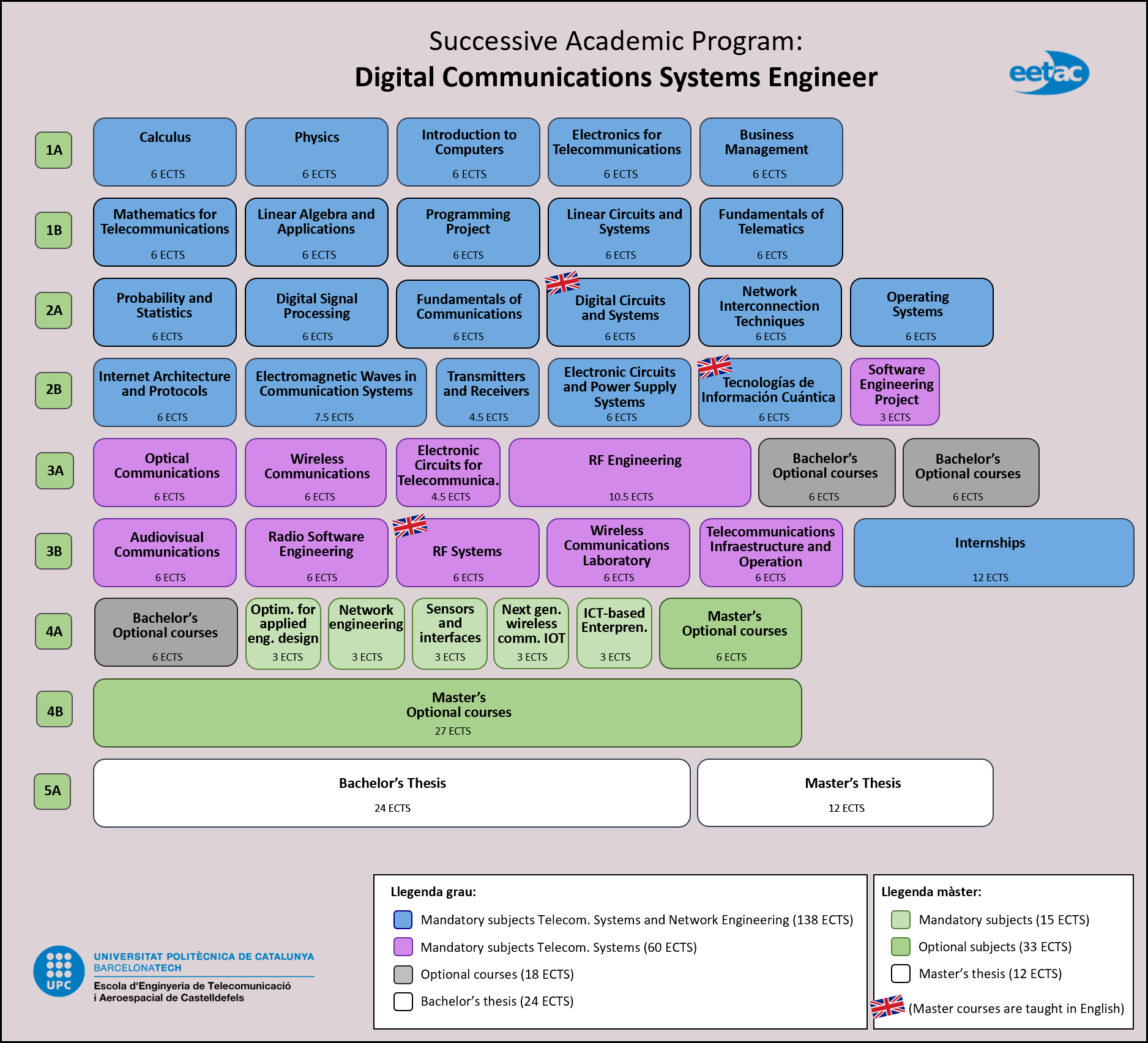 The objective of this Successive Academic Program is to train professionals specialized in the analysis and design of current and future digital communications systems and is made up of: