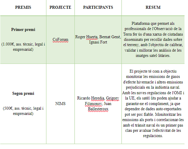 De entre todas las propuestas presentadas, el jurado ha seleccionado 2 como las mejores, ya que han ideado soluciones para recoger datos y mejorar la observación de la Tierra acon imágenes satelitarias y monitorizar las emisiones contaminantes de la industria naval.
